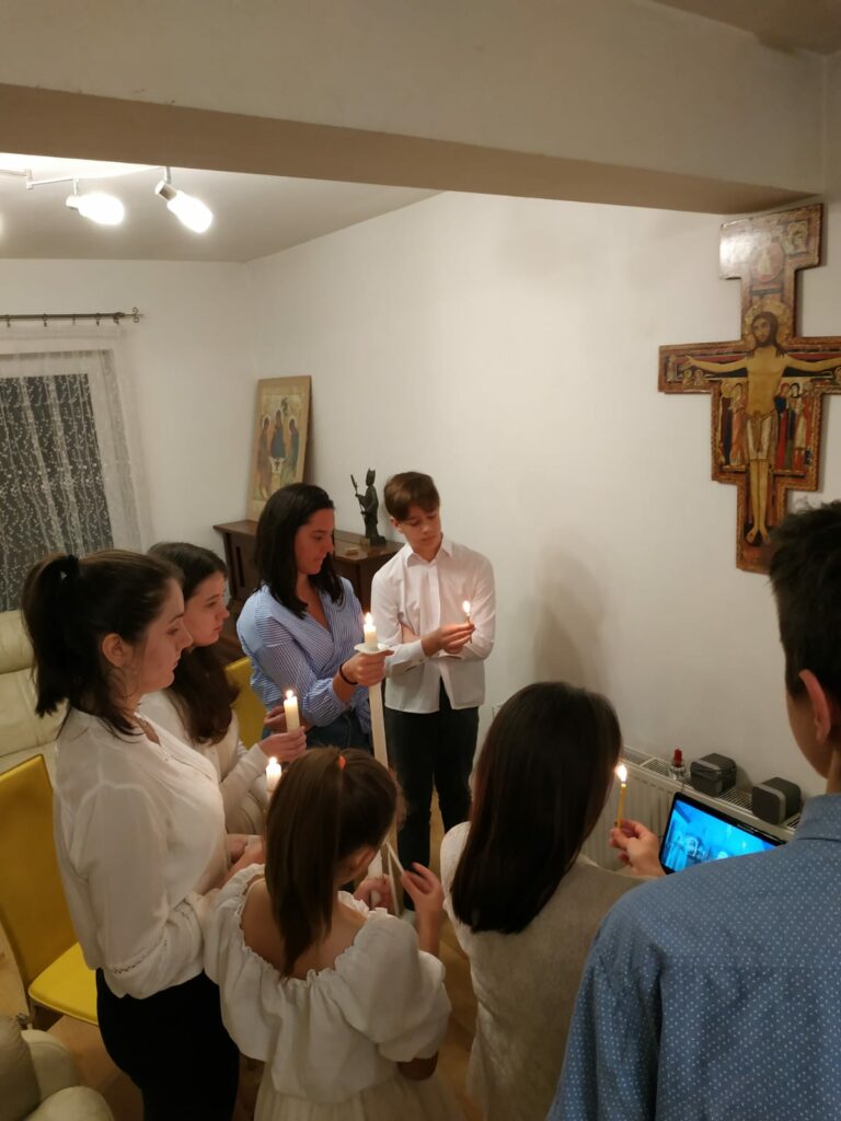 This shared experience took place in the middle of our daily life, which has its conflicts, differences of opinion and childish fights, but which also includes cooperation, spontaneity, creative proposals and games. We have been positively surprised that our children, and several are teenagers, wanted to participate with us in the masses and celebrations online. There are nine of us altogether: our children who are aged between 6 and 23 and the two of us. That is a larger group of people than are officially allowed in the local churches.