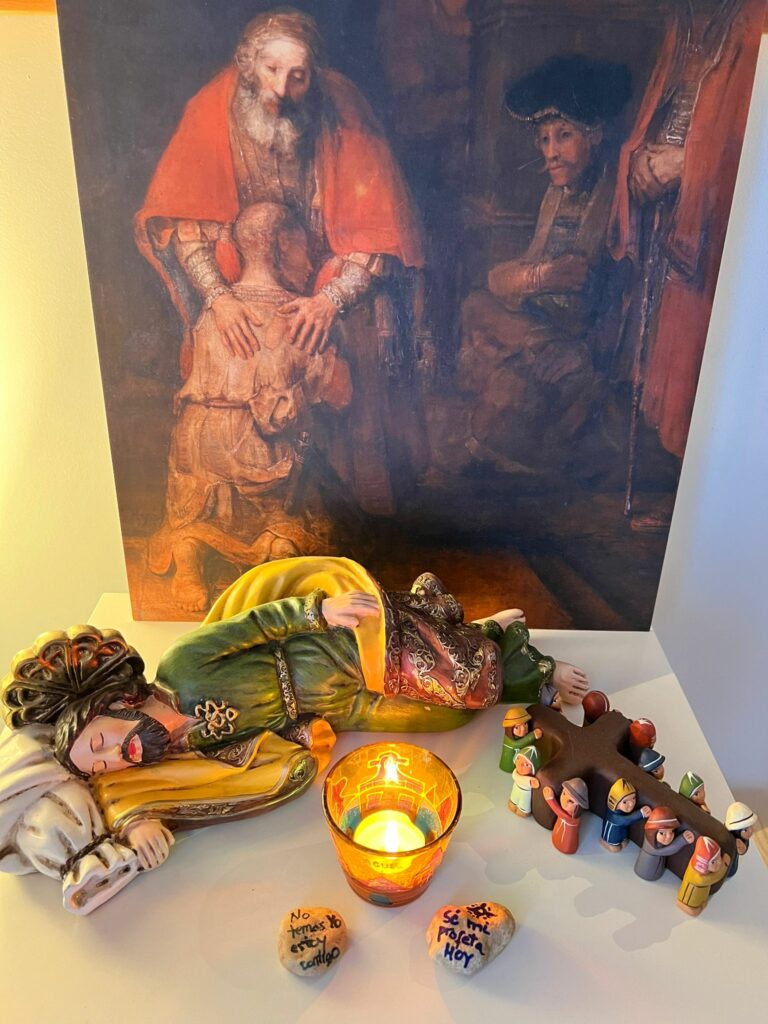 It is true that other years we have been able to benefit from more days by coming separately. After all, the exercises are a call from God to be alone with him, a call to silence to let him speak to your heart and also a space to rest and recharge your batteries. So in theory the longer you come the more you get out of it. At the same time it normally takes a whole day to leave aside the rucksack of routines, problems and thoughts that we bring to prayer. It takes time to get used to this dynamic of calm listening. But although a weekend may seem like a short time, I have to say that it has been a gift for me to be able to come to exercises as a family, this year.